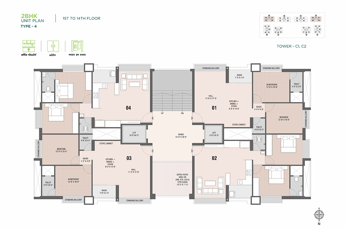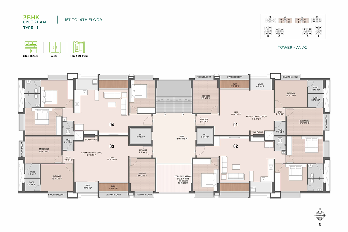 Concealed plumbing at centre point with premium quality bath fittings and sanitary wear Electrification - Concealed wiring and standard modular switch with ample points