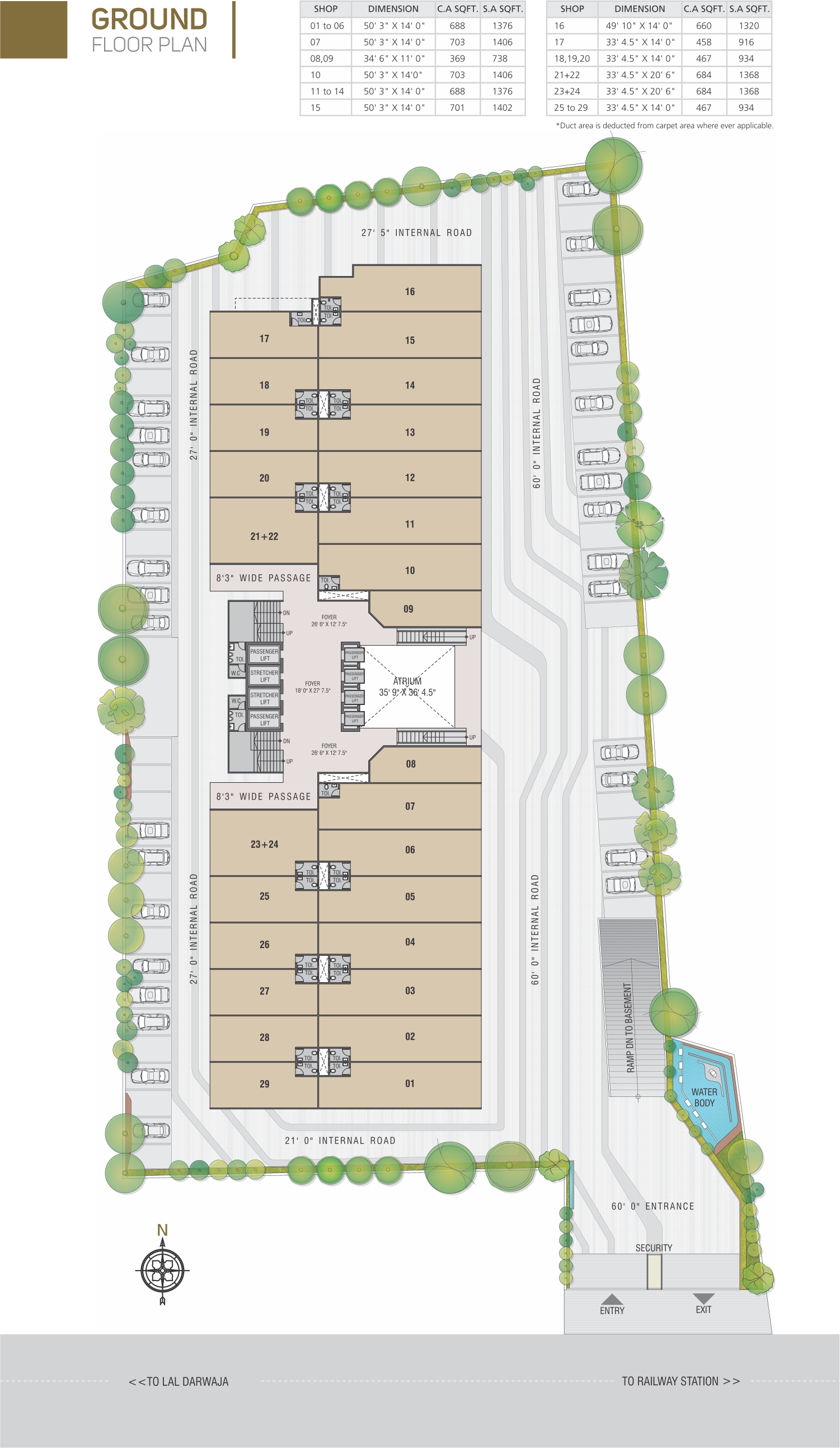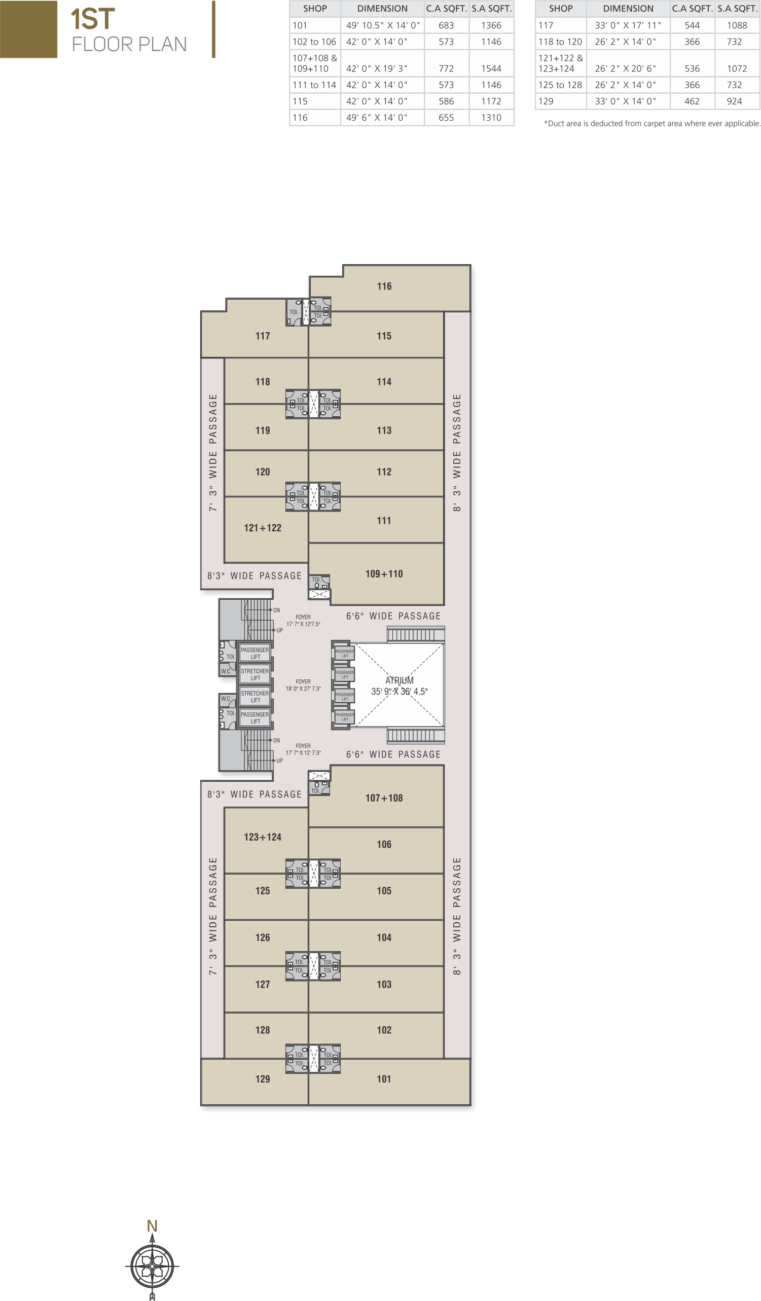 Height of shops on ground and first floor-slab to slab 11.6 ft.