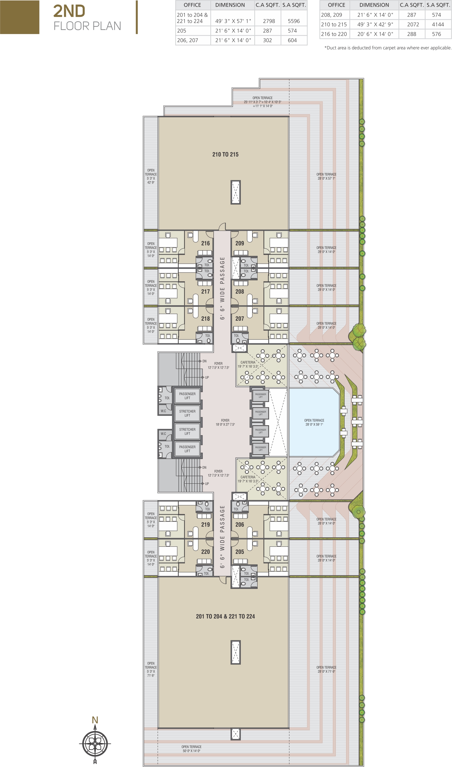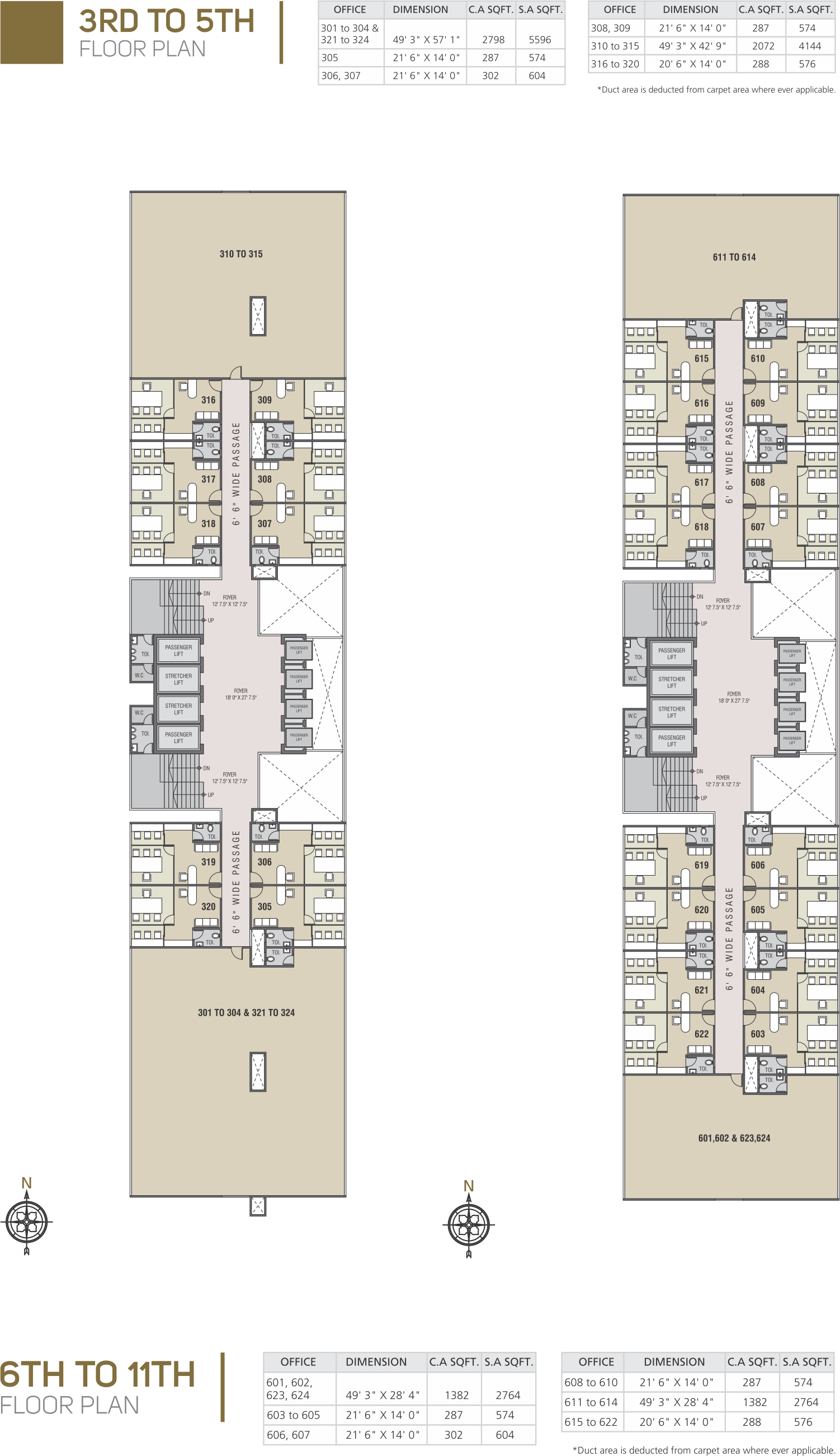 2 stretcher lifts, 6 passenger lifts and 2 escalators
